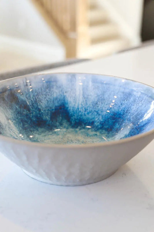 Large Stoneware Serving Bowl (Blue Waves)