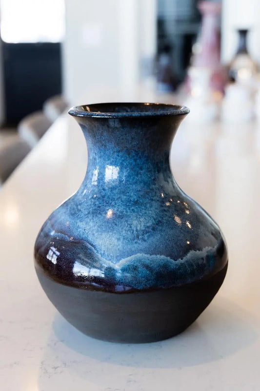 Medium Decorative Flower Vase - Blues on Black Clay (Premium)