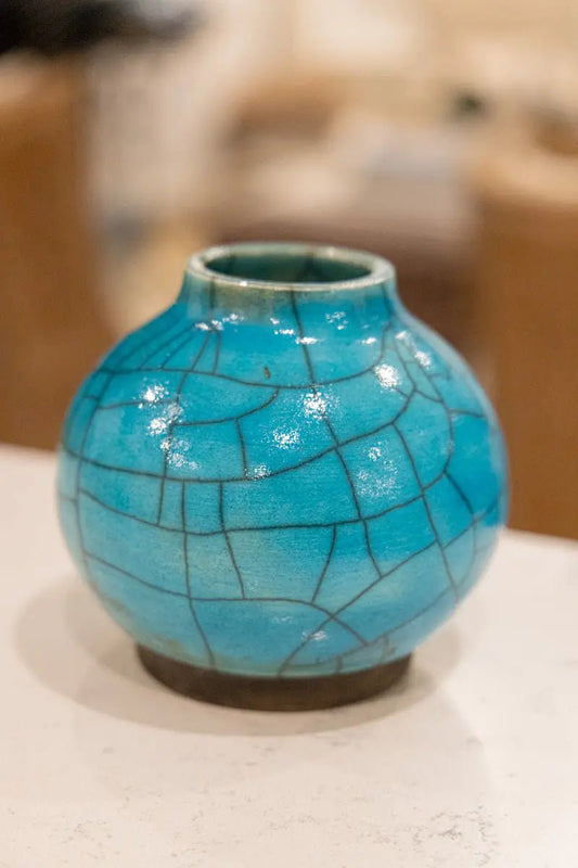 Medium-Small Raku Pottery Decorative Pot (Large Crackle Turquoise)