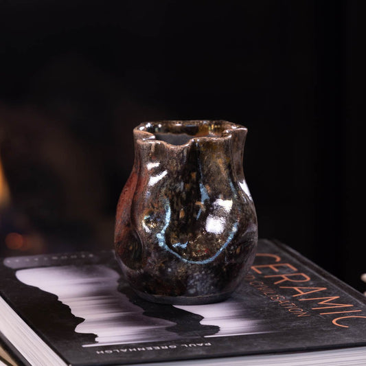 Pot #11 - Medium-Small Manipulated RAKU Pot (Spotted Coppers and Darks)