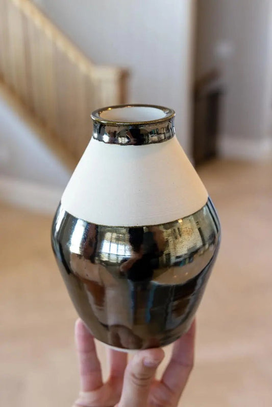 SET OF 2 Medium-Small & Large Reflective Metallic Porcelain Vases