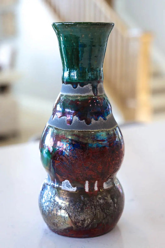 XL Raku-Fired Tall Decorative Pot (Blacks, Greens, & Coppers)