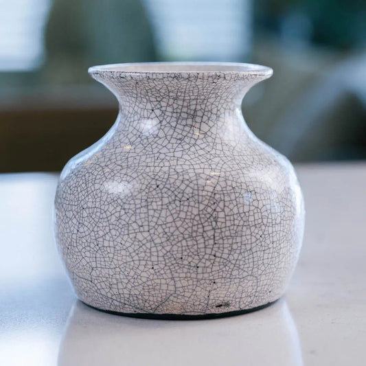 #41 Small Raku Decorative Crackle Pot - White & Black - (Creative Collection)