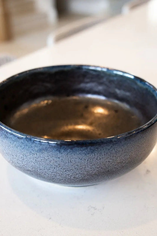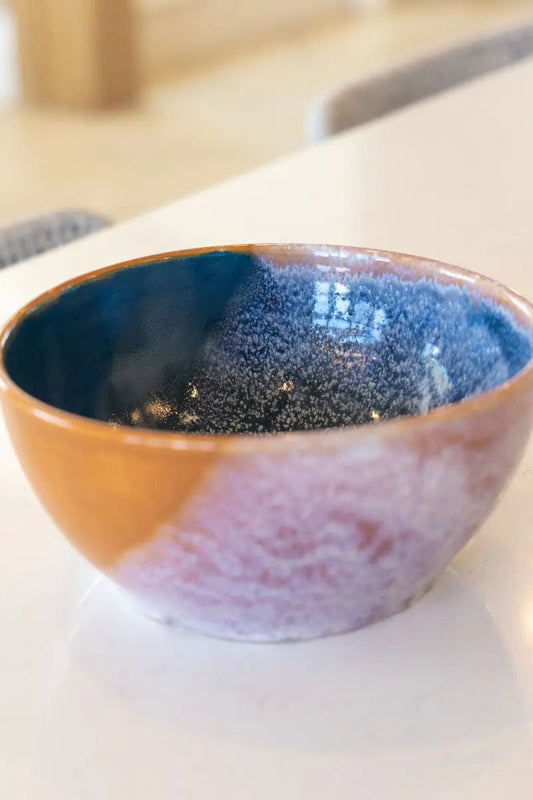 Large Serving Bowl - Two Toned with Creamy Splash (Cinnamons & Dark Teals)