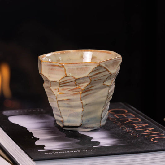 Pot #69 - Medium-Small Manipulated Pot (Geometric Carving with Rich Browns & Tans)