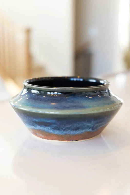 Sharp-Shouldered Decorative Pot - Deep Ocean & Copper (Premium)