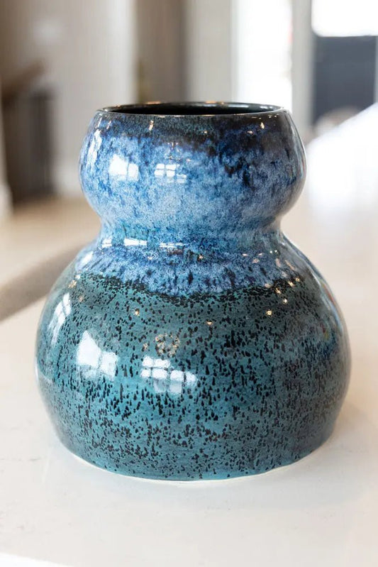 XL Decorative Stoneware Broad-Based Vase (Blues & Whites)