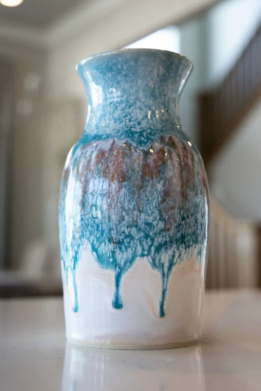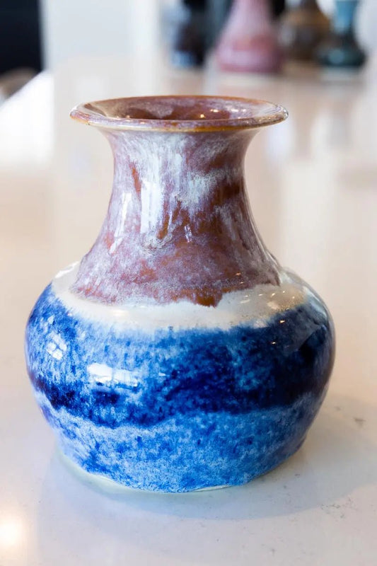 Large Tri-Toned Decorative Stoneware Vase (Cinnamon, Cobalt, & White)