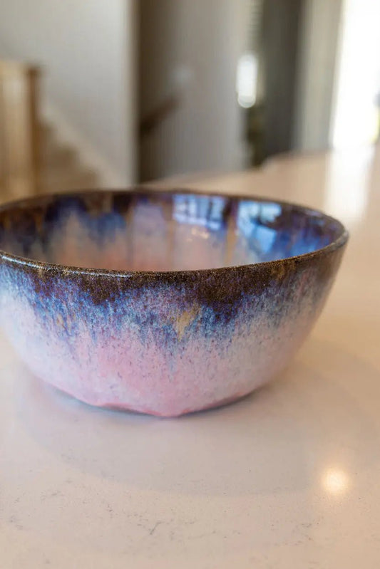 Large Decorative Bowl: Pinks, Browns, and Blues