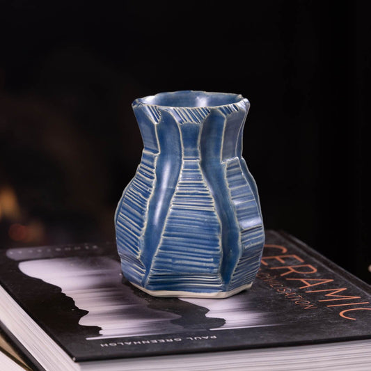 Pot #32 - Medium Manipulated Pot (Carved Denim Blues)