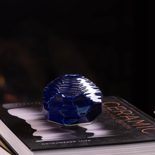 Pot #35 - Medium-Small Manipulated Pot (Dark Cobalt Blues)
