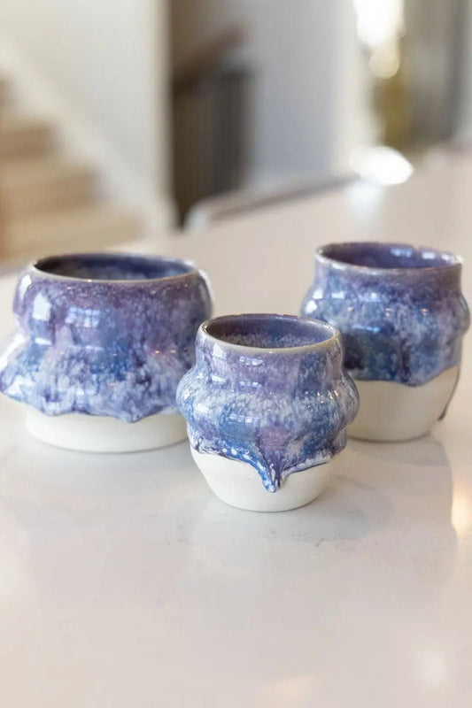 Set of Three Medium Decorative Pots - Violets, Blues, & Creams