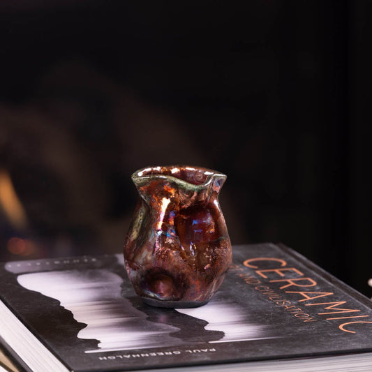 Pot #03 - X-Small Manipulated RAKU Pot (Coppers and Greens)