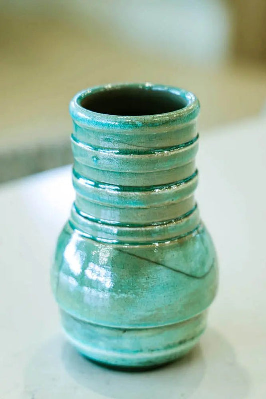 Medium Decorative Stoneware Pot (Creams & Turquoise Sage)