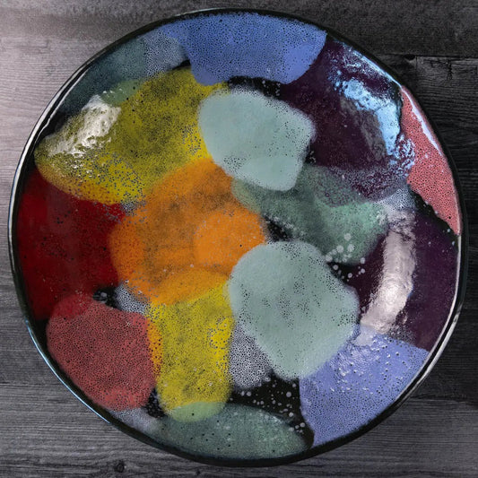 #11 XL Stoneware Dark Decorative Serving Bowl with Big, Bright Abstract Colors (Color Spectrum Series)
