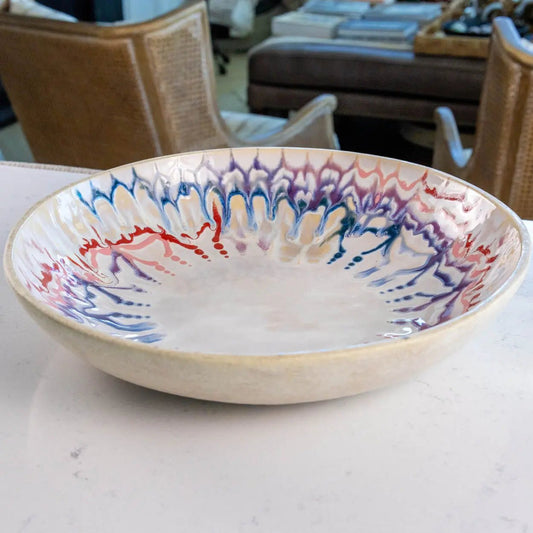 #31 XL Stoneware Decorative Serving Bowl Drippy Blues, Purples, Reds, and Pinks (Color Spectrum Series)