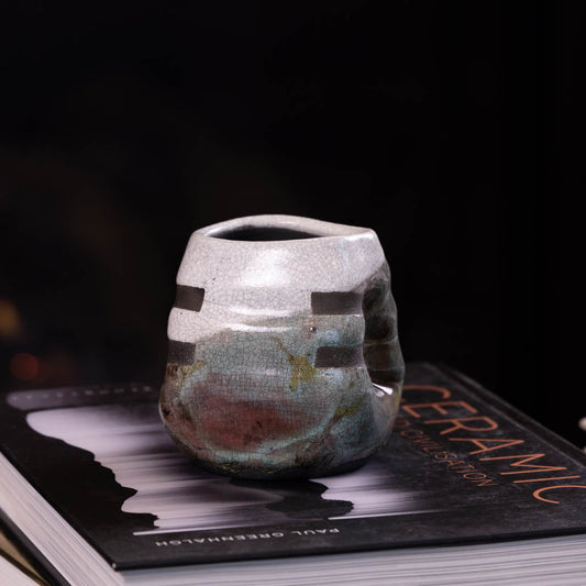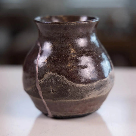 #53 Small KINTSUGI Raku Decorative Boiled Pot - Sage Plum & Charcoal - (Creative Collection)