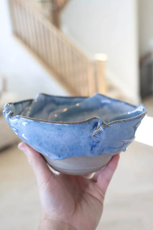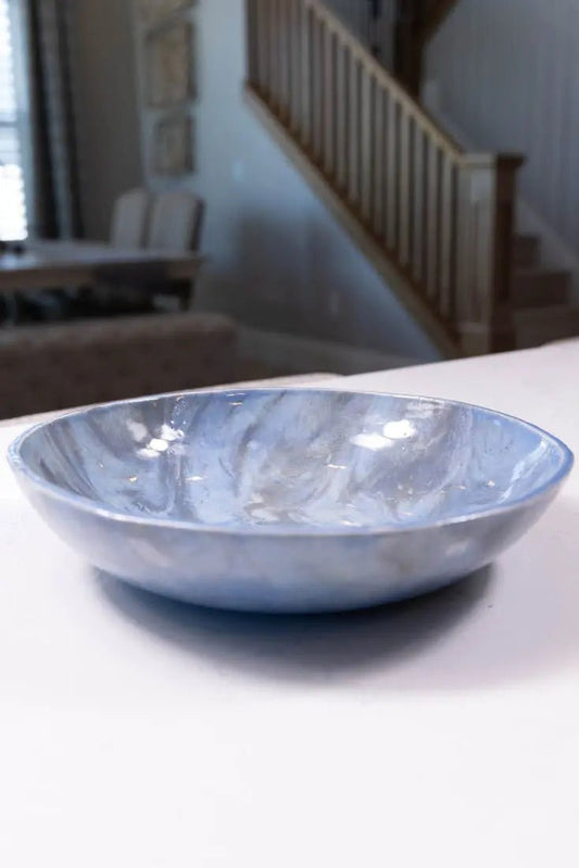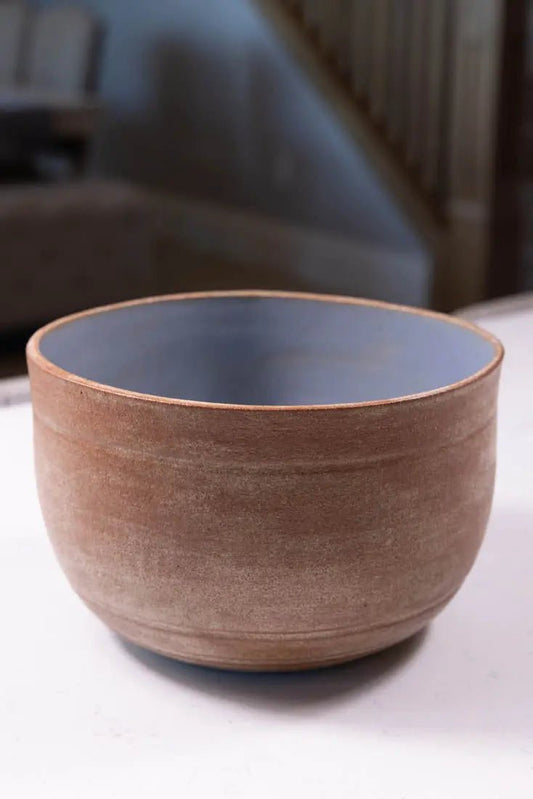 Bowl #20 Large Stoneware Nerikomi Sky Blue & Brown Serving Bowl (Big Bowl Series)