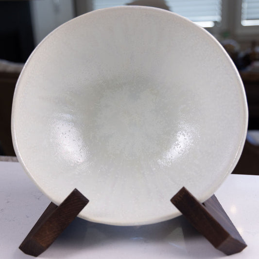 Large Porcelain Crystalized Hemisphere Bowl (Pearlescent White)