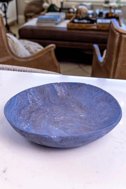 Large Folded Contemporary Decorative Bowl (Cement-Style, Creams, & Dark Blues)
