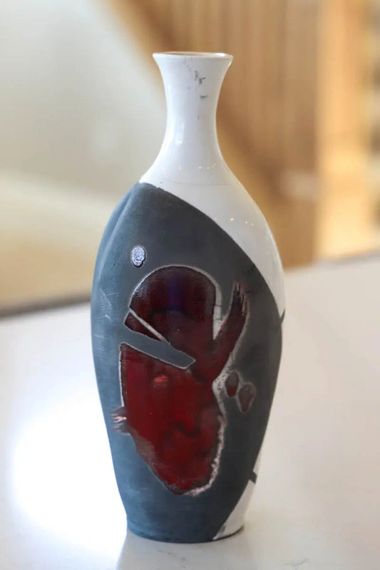 XXL Raku-Fired Flattened-Form Decorative Pot (Whites, Carbon Blacks, & Oxblood Red)
