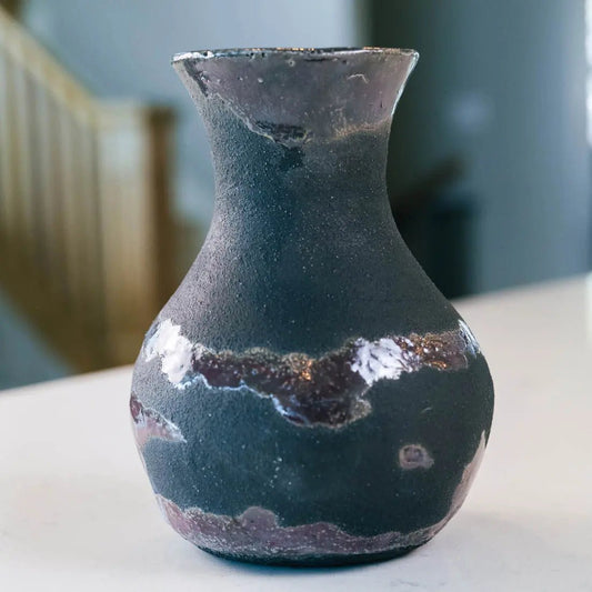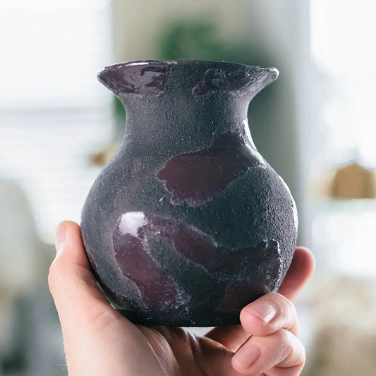 #21 Small Decorative Boiled Raku Pot - Charcoals & Dark Purple - (Creative Collection)