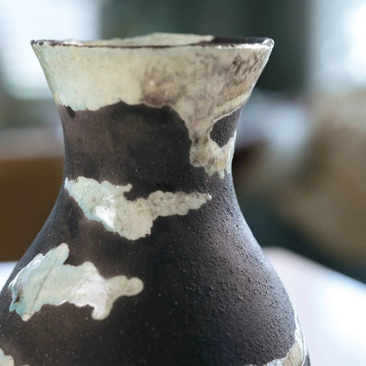 #23 Medium Decorative Boiled Raku Pot - Charcoal & Seafoam - (Creative Collection) SECONDS