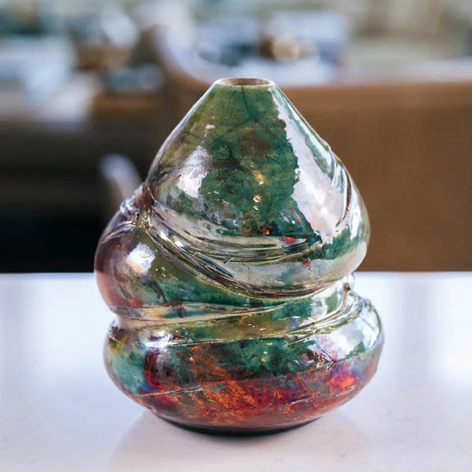 #27 XL Raku Decorative Rubber Band Pot/Vase - Matte & Metallic Coppers, Greens and Charcoals - (Creative Collection)