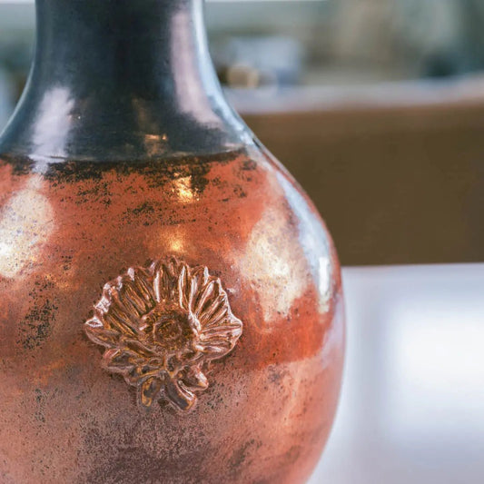 #35 XL Raku Decorative Boiled Pot/Vase - Coppers, Charcoals - (Creative Collection)