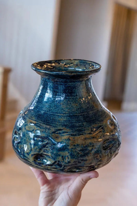 Large Hand-Textured Decorative Stoneware Pot (Bumps & Antique Shaping, Seconds)