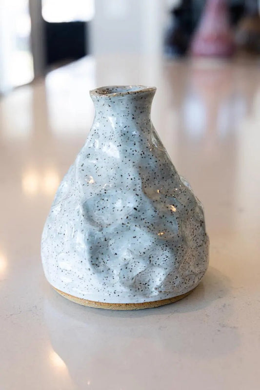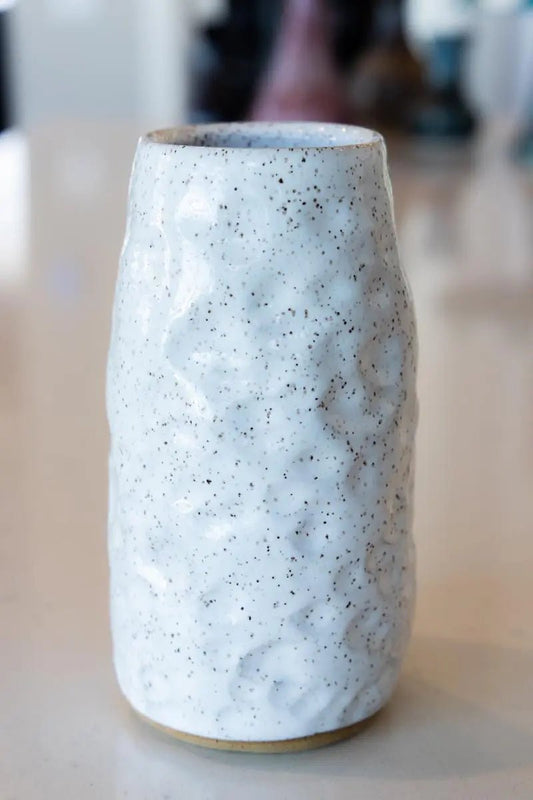Large Hand-Textured Speckled Stoneware Flower Vase (White)