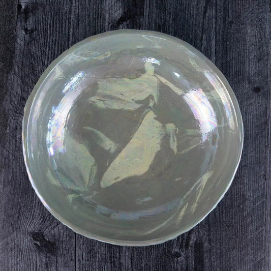 Large Nerikomi Stoneware "Mother of Pearl" Serving/Decorative Bowl - Greens & Creams (Alchemy Collection)