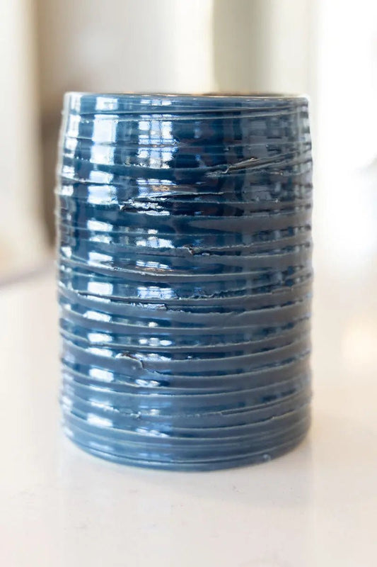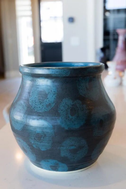 XXXL Hand-Ringed Extra-Thick Stoneware Planter Pot (Charcoal & Cerulean)