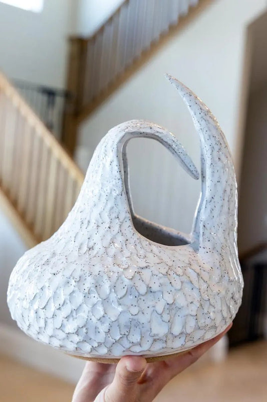 XL Abstract Speckled Stoneware Feathered Scupture Pot (White, Seconds)