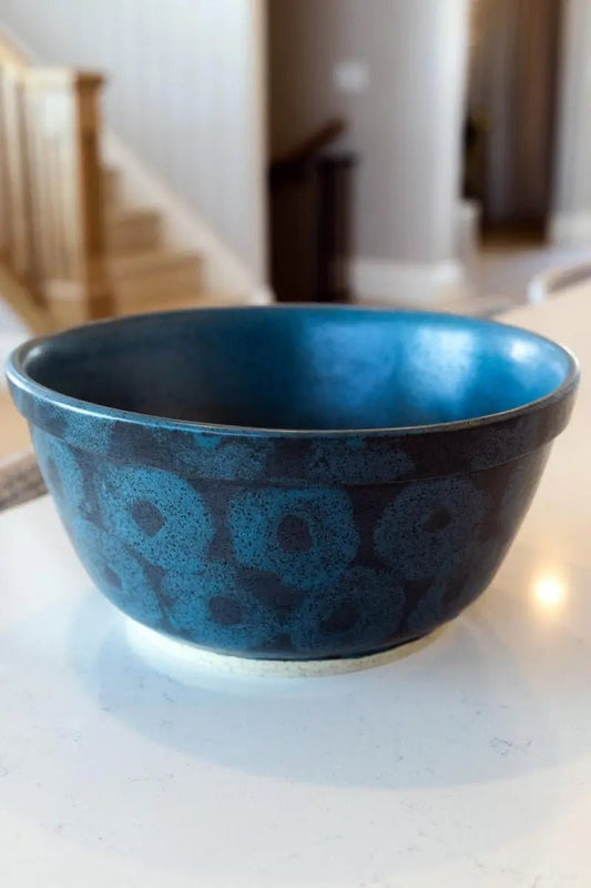 XL Hand-Ringed Decorative Stoneware Serving Bowl (Charcoal & Cerulean)
