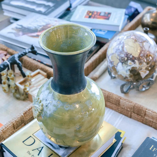 #38 XXL Stoneware Decorative Pot/Vase - Spotted Translucent Sage & Charcoal - (Creative Collection)
