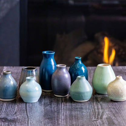 - All pots in this collection are labeled as x-small, small, medium-small, or medium (medium being the biggest size vase in this collection).- Size has much less to do with pricing in this collection than difficulty and complexity of creating the piece. I use different firing methods, glaze techniques, raw materials, clay type, stains, etc to get every finished pot, and all factors are applied when figuring out the final price.